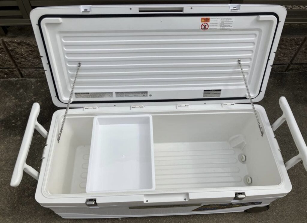 内寸約85cmで大柄青物にも完全対応可能、保冷剤や氷を多めに入れられる余裕があります。