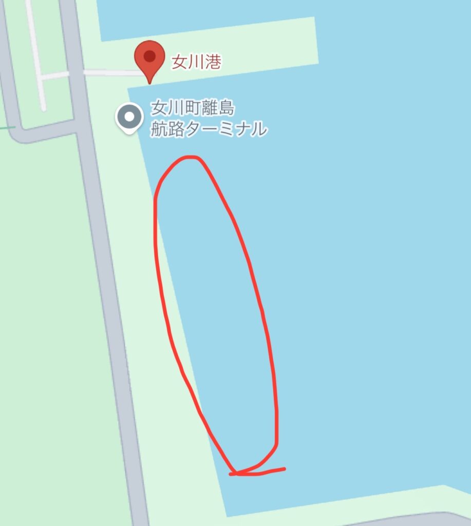 女川港の中でも人気なのが、航路ターミナル前です。常夜灯もあることから周辺が明るく魚も集まりやすいです。